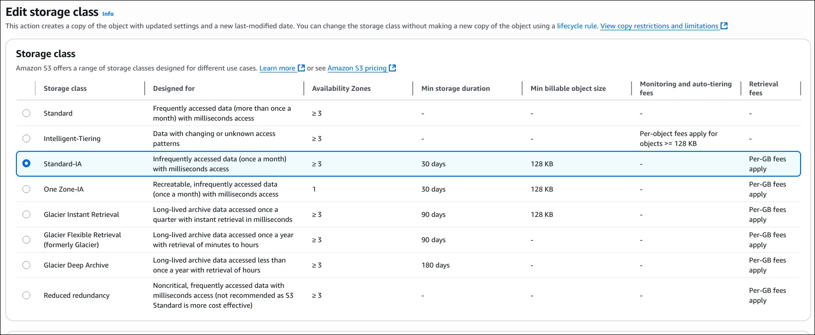 - Cost optimization: choose the right storage class (Standard, IA, Glacier, etc.) based on needs.
