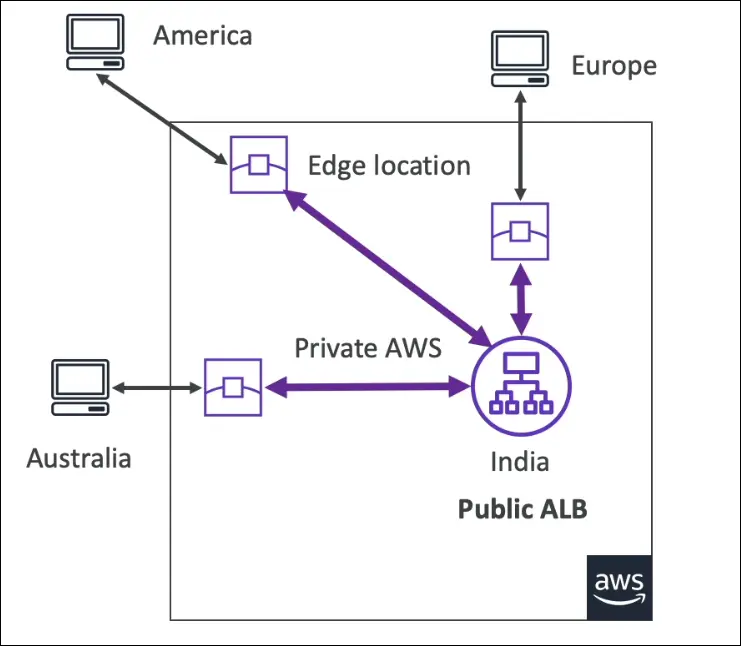 - Uses Edge Locations to route data through AWS’s global network backbone.