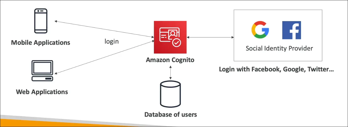 - Example: An app allowing users to log in using email/password or social accounts via Cognito.