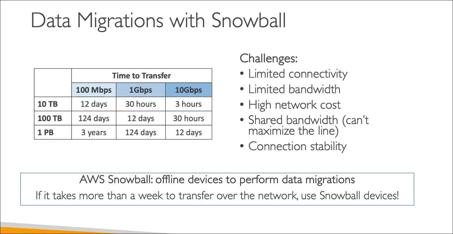 - Ideal for petabyte-scale data transfers where the network is slow, costly, or unstable.