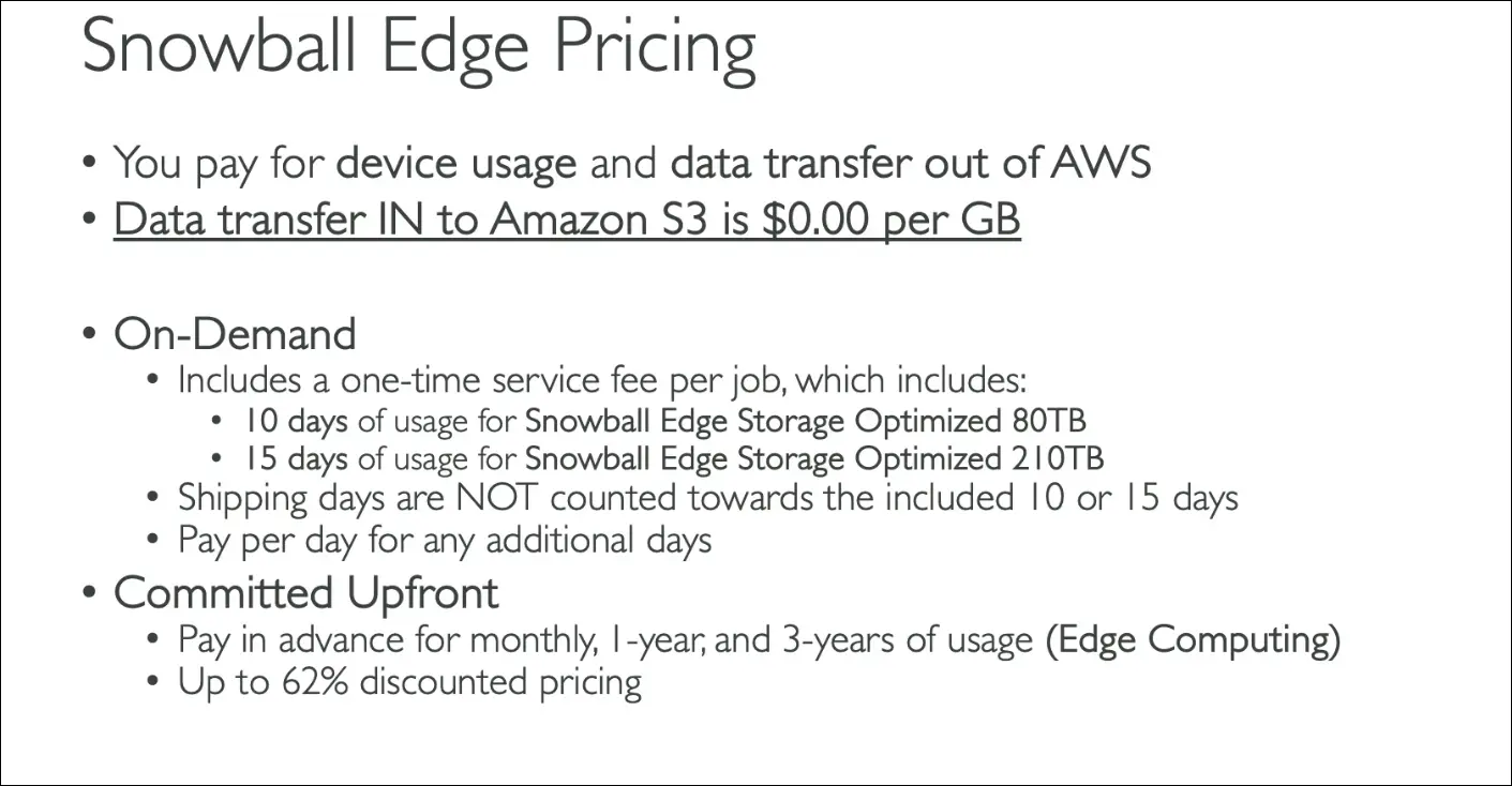 - Includes 15 days of usage (for 210 TB Snowball Edge).