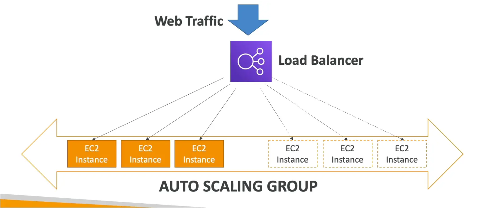 - Traffic decreases → ASG terminates extra EC2s.