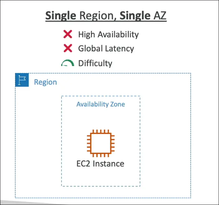 | Single Region, Single AZ | 1 | ❌ Low | ❌ High for global | ❌ High | ⭐ | Dev/Test |