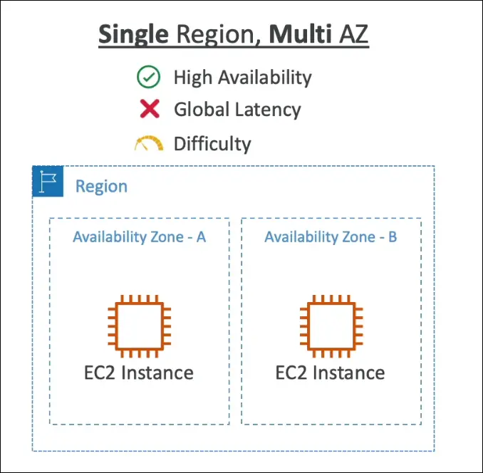 | Setup | EC2 instances (and other resources) in multiple AZs within the same region |